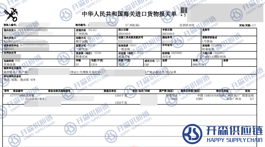 【本文結語】 上述就是廣州機場坦桑尼亞活青蟹進口報關代理服務【清關案例】的全部內容,希望能對您有所幫助,如有水產品進口報關上任何疑問及問題可隨時在線聯系我們或撥打 18002611553,開森供應鏈擁有豐富的水產品進口報關操作經驗及案例,10余年進口經驗為您所用,各類進口疑難都能為您一一解答及協助快速處理解決!