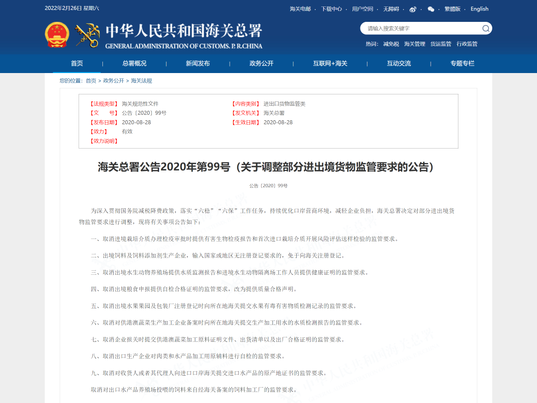 2020年8月,海關(guān)總署發(fā)布《關(guān)于調(diào)整部分進(jìn)出境貨物監(jiān)管要求的公告》(2020年第99號(hào)),為深入貫徹國務(wù)院減稅降費(fèi)政策,落實(shí)“六穩(wěn)”“六保”工作任務(wù),持續(xù)優(yōu)化口岸營商環(huán)境,減輕企業(yè)負(fù)擔(dān),決定對(duì)部分進(jìn)出境貨物監(jiān)管要求進(jìn)行調(diào)整,其中對(duì)進(jìn)口化妝品的監(jiān)管調(diào)整如下: