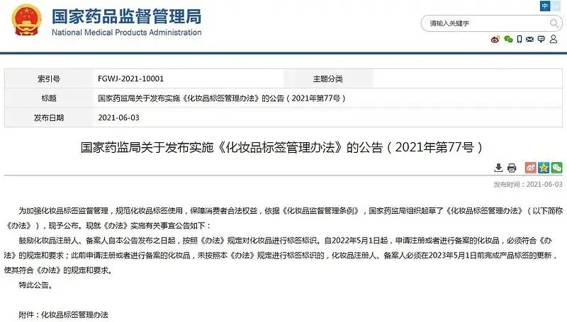 2022年5月開始,國家藥品監(jiān)督管理局關(guān)于《化妝品標(biāo)簽管理辦法》(2021年第77號(hào))將正式施行,關(guān)于進(jìn)口化妝品應(yīng)注意以下內(nèi)容:
