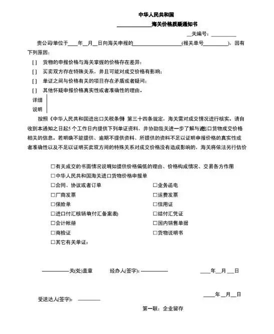 自收到《海關(guān)價格質(zhì)疑通知書》之日起5個工作日內(nèi),以書面形式提供相關(guān)資料(如提供價格偏低的理由、價格構(gòu)成情況、交易各方作用的情況說明,《中華人民共和國海關(guān)進出口貨物價格補充申報單》,合同、協(xié)議或者訂單,業(yè)務(wù)函電,廠商發(fā)票,運費發(fā)票,保險單,結(jié)付匯憑證,貨物說明書等),以證明其申報價格真實、準確或買賣雙方之間的特殊關(guān)系未影響成交價格。
