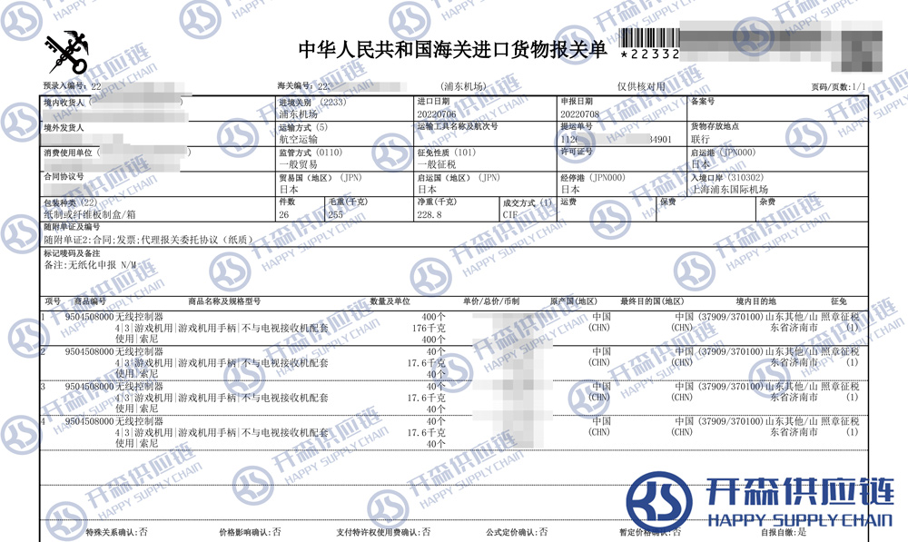 【本文結(jié)語】 上述就是日本索尼PS5游戲機(jī)進(jìn)口清關(guān)報(bào)關(guān)代理服務(wù)【經(jīng)典案例】的全部內(nèi)容,希望能對您有所幫助,如有游戲機(jī)進(jìn)口報(bào)關(guān)上任何疑問及問題可隨時(shí)在線聯(lián)系我們或撥打 18002611553,開森供應(yīng)鏈擁有豐富的游戲機(jī)進(jìn)口報(bào)關(guān)操作經(jīng)驗(yàn)及案例,10余年進(jìn)口經(jīng)驗(yàn)為您所用,各類進(jìn)口疑難都能為您一一解答及協(xié)助快速處理解決!