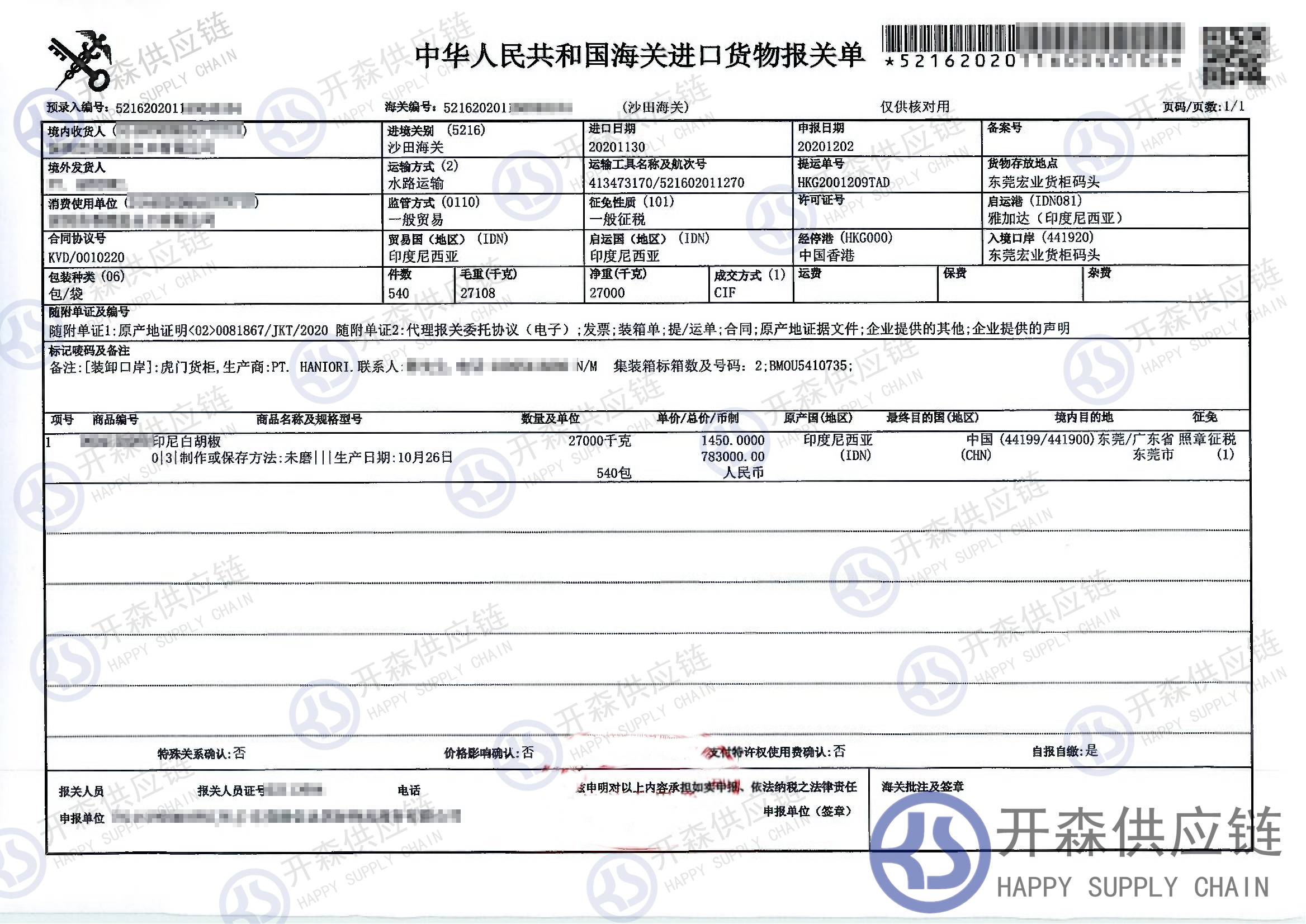 從印度尼西亞進口一批胡椒到東莞碼頭,我司提供門到門進口一站式清關(guān)服務(wù),開森擁有十余年農(nóng)副產(chǎn)品進口清關(guān)經(jīng)驗及案例,為客戶提供量身制作的進口方案,讓客戶進口省時省心省成本。